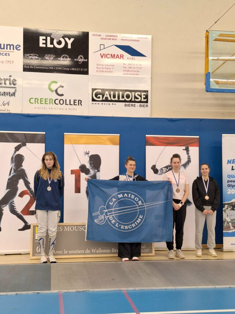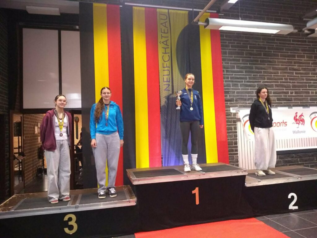 Op zondag behaalde Renée Bruynooghe nog een tweede podiumplaats met zilver bij de dames individueel. Na een moeilijke start in de poules (2/6) herpakte ze zich knap. In de T32 versloeg ze Anna Gulyas (SC Parcival Leuven) met 15-5. Daarna schakelde ze clubgenote Noa De Clerck uit (15-8). In de kwartfinale won ze nipt van Haeike Josephy met 10-9. In de halve finale versloeg ze Micol Cattana (SR Grande Harmonie) met 15-12. In de finale moest ze met 9-15 de duimen leggen voor Valerie Spazzoli (La Maison de l’Escrime).